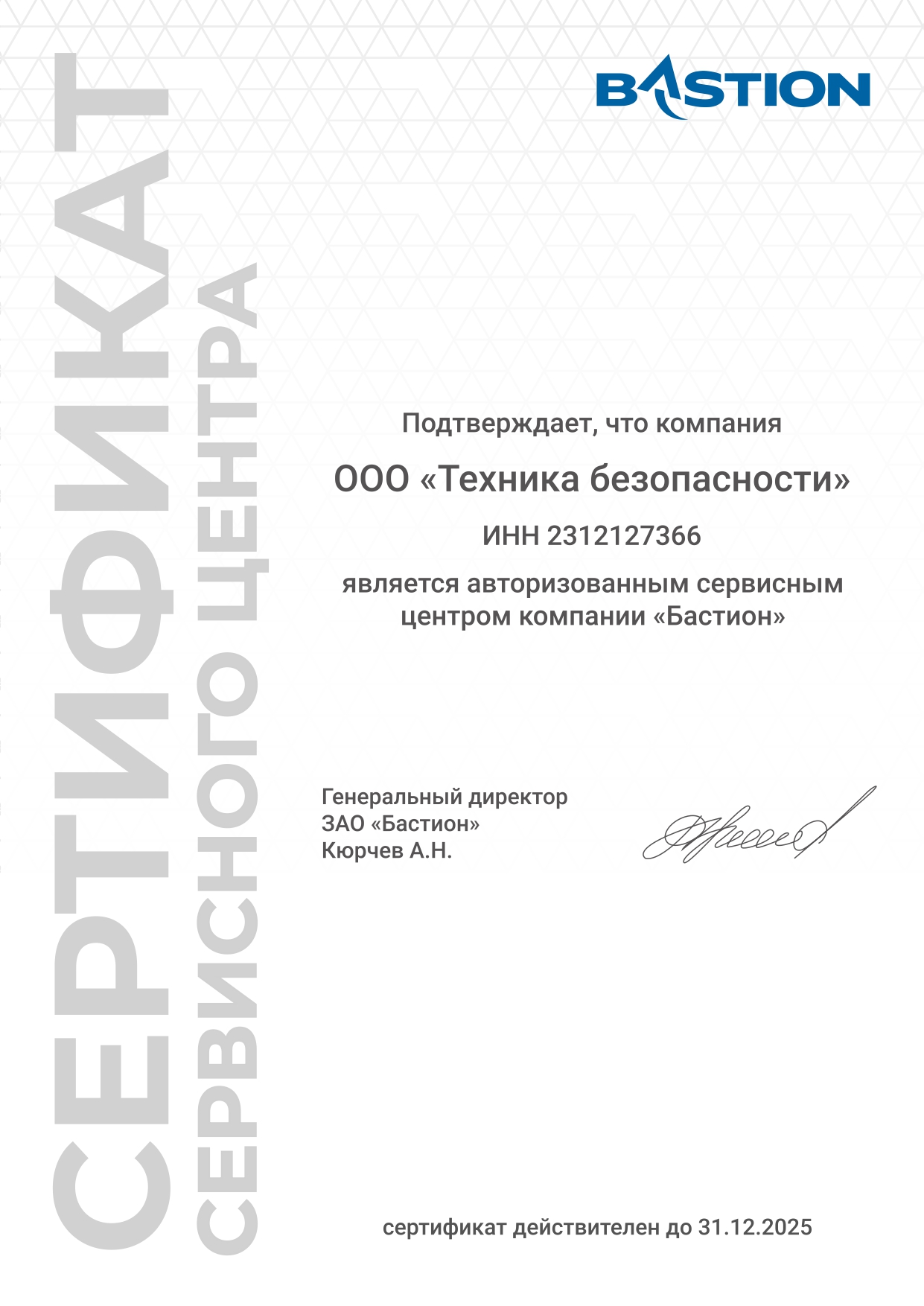 Полная гарантия от производителя. Все товары имеют официальную гарантию «Бастион», которую мы беспрепятственно исполняем.